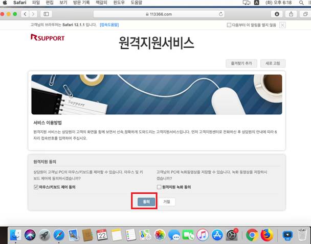3. 2번의 동의 버튼 클릭하면 왼쪽하단