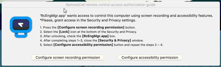 [ 손쉬운 사용 권한 설정 ] 을 해야 고객 pc 마우스 제어를 할 수 있음.