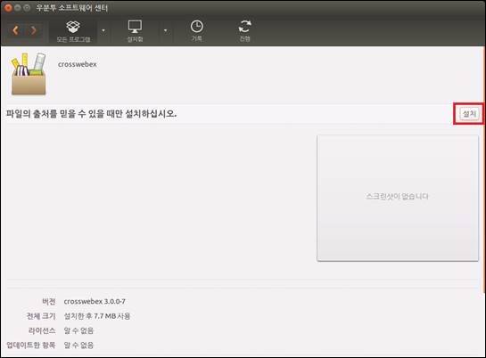우분투 소프트웨어 센터가 실행되면 【설치】 버튼을 선택하여 설치를 시작합니다.