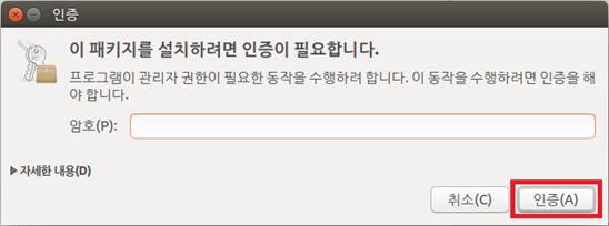프로그램을 설치하기 위한 비밀번호 입력창이 나타나면 관리자 암호를 입력하고 【인증】을 클릭합니다.
