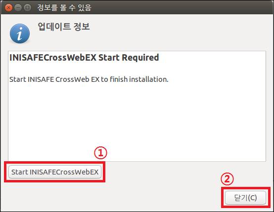 INISAFECrossWebEX】 버튼을 클릭한 후 【닫기】 버튼을 클릭하여 창을 닫습니다.