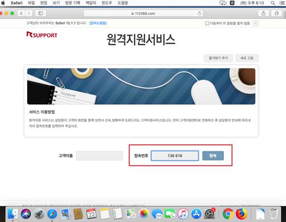 [ 화면 기록 권한 설정 ] 을 해야 고객 pc 화면이 보임.